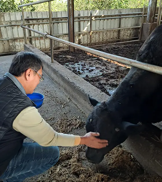 蘇念成先生的父親在50 年代便養牛維生,所以自小在牛棚長大的蘇念成十分清楚牛隻飼育過程透明化的重要性,堅持不用瘦肉精、不打抗生素、生長激素,使用在地酒糟、牧草地瓜等作物當飼料,用心養出肉質鮮的肉牛, 牛肉自產自銷。